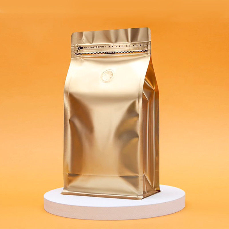 Sacs à café à fond plat imprimés sur mesure de 100g 250g 500g avec valve et fermeture éclair pour l'emballage de grains de café/thé